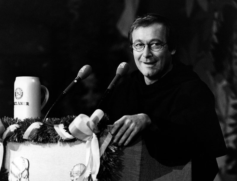 Erich Hallhuber als Bruder Barnabas beim Starkbieranstich auf dem Nockherberg, 1997. (Süddeutsche Zeitung Photo) HLB