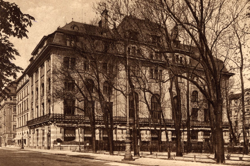 Von 1899 bis 1901 erbaute der Architekt Friedrich von Thiersch (1852-1921) das "Haus für Handel und Gewerbe" im Auftrag der Handelskammer und der Börse München. Nach dem Auszug der Börse München 1963 befindet sich hier der Hauptsitz der Industrie- und Handelskammer (IHK) für München und Oberbayern. Das Foto zeigt die Situation am Münchner Maximiliansplatz im Jahr 1930. (Bayerisches Wirtschaftsarchiv)