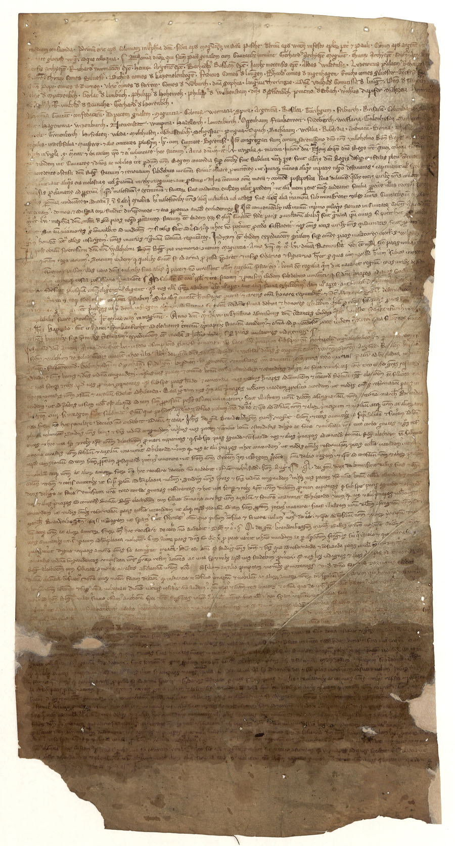 Handschrift aus dem Kloster St. Stephan im Rottgau. Darin finden sich Aufzeichnungen über den Tag zu Würzburg 1256. (Bayerisches Hauptstaatsarchiv, HU Passau 100/1)