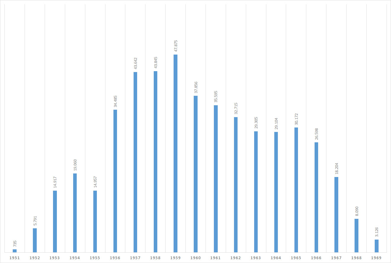 Produktionszahlen der Hans Glas GmbH für Glas-Roller und -Automobile 1951-1969. HLB