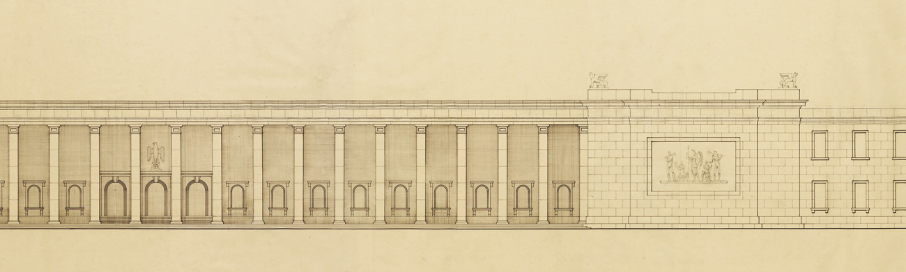Fassade des geplanten "Hauses der Deutschen Architektur“. Entwurf von Leonhard Gall. (Haus der Kunst, Historisches Archiv) HLB
