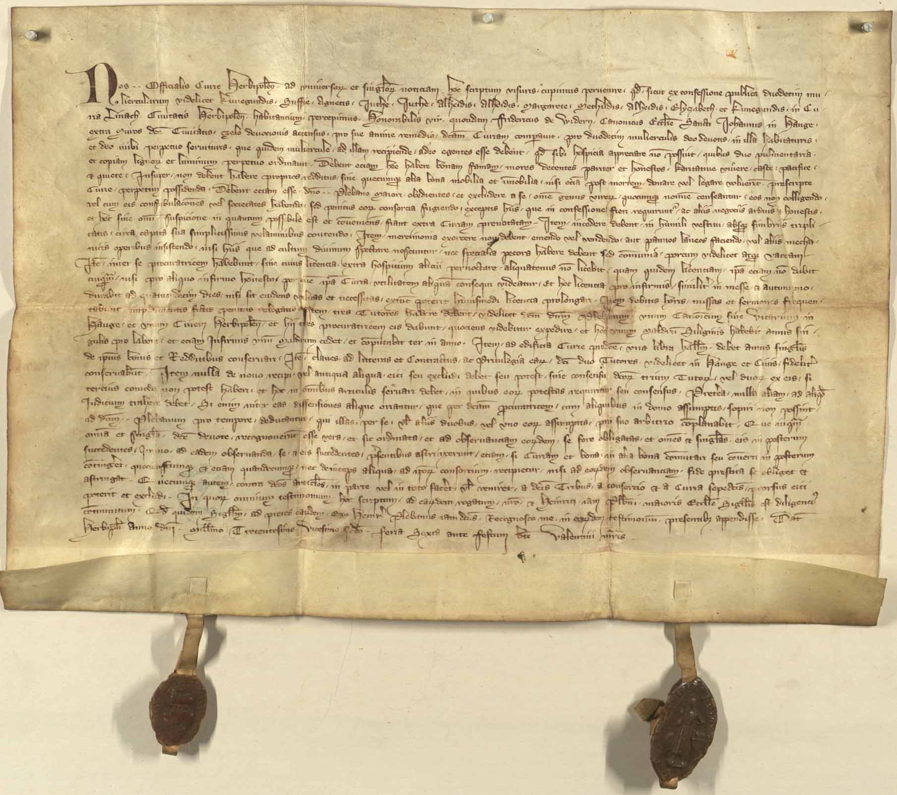 Würzburger Ratsurkunde – Hausordnung des Würzburger Beginenhauses. (Stadtarchiv Würzburg, WRU 2422) HLB