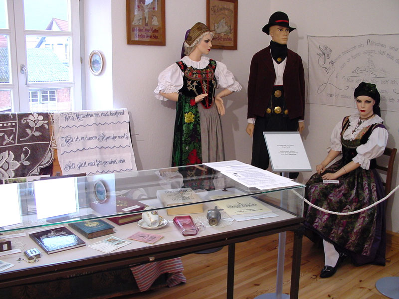 Blick in ein ursprünglich für die Ausstellung "Heimatvertriebene" im Museum Bürgstadt (1996) gestaltetes Zimmer, das bis 2023 bestand und nach der Neugestaltung des Museums neu arrangiert wurde. (Heimat- und Geschichtsverein Bürgstadt e.V) HLB
