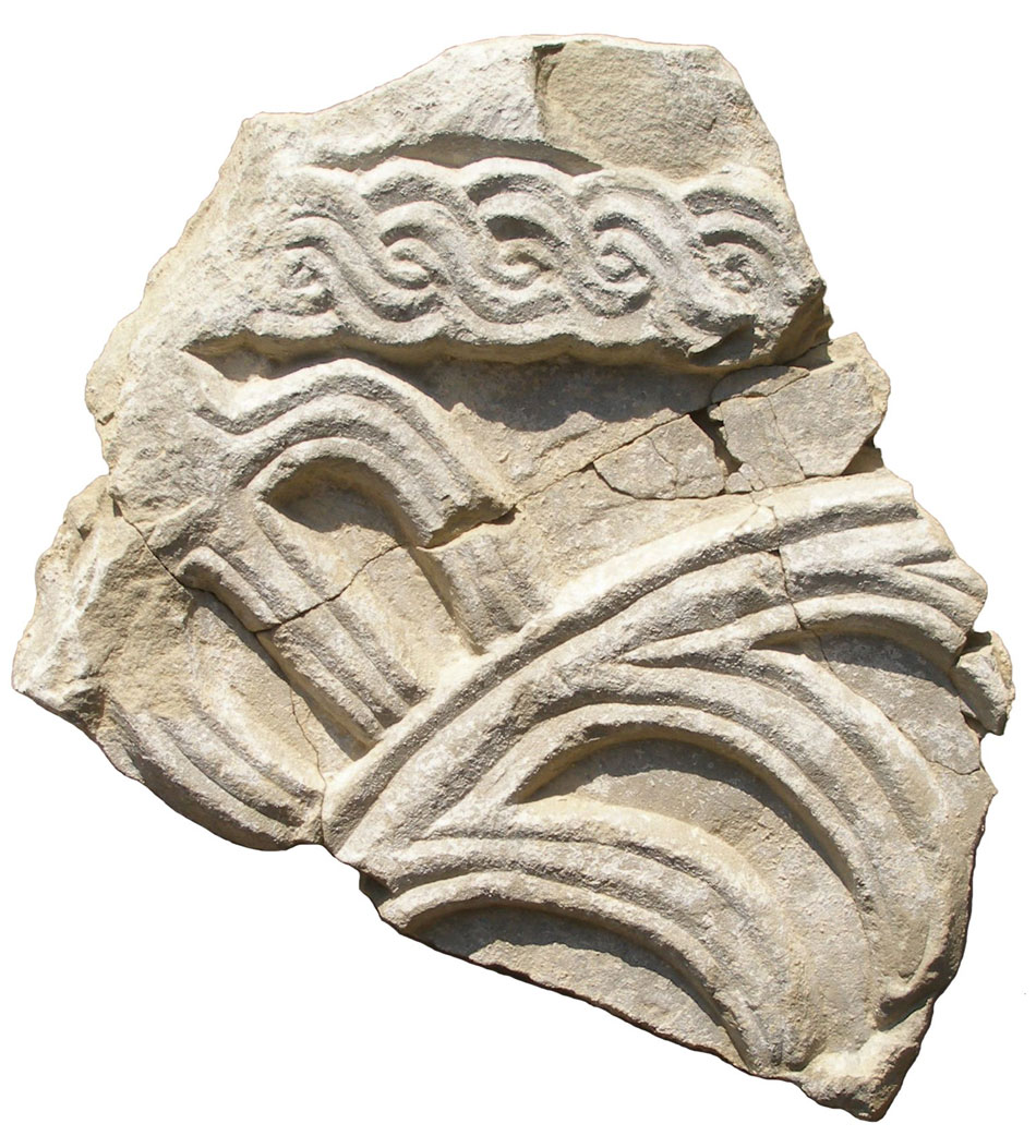 Plattenfragment mit Flechtmuster, ehem. Klosterkirche St. Salvator, Herrenchiemsee, um 820. (Foto: Hermann Dannheimer. Archäologische Staatssammlung München) HLB