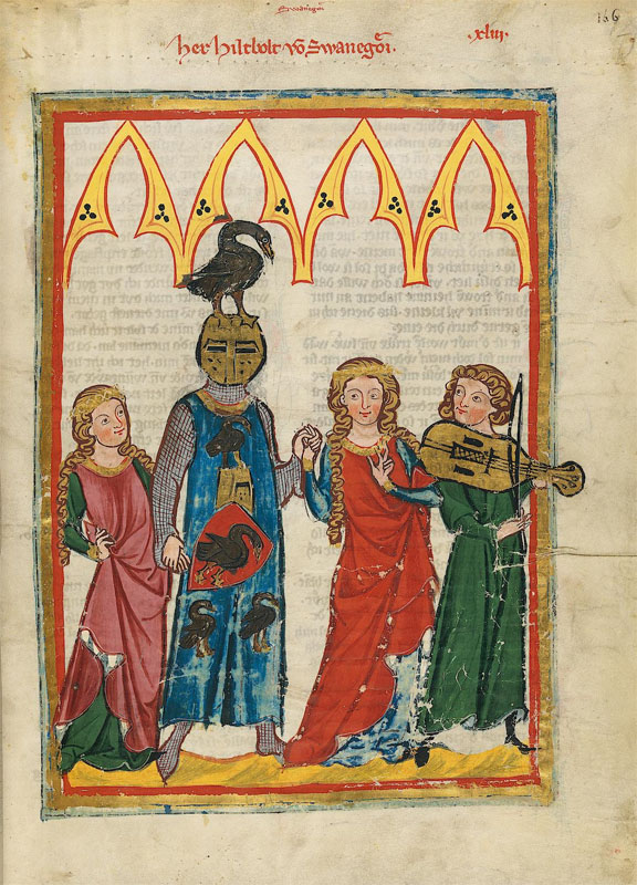 Darstellung Hiltpolds von Schwangau in der Großen Heidelberger Liederhandschrift (Codex Manesse). (Universitätsbibliothek Heidelberg, Cod. Pal. germ. 848, Zürich 1300/1340, fol. 146r)