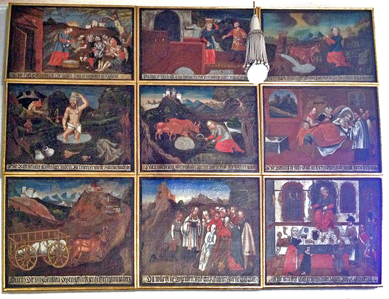 Tafelgemälde mit Szenen aus dem Leben der heiligen Gunthildis in der Kirche St. Michael in Biberbach (Beilngries, Lkr. Eichstätt) (Foto: Werner Robl).