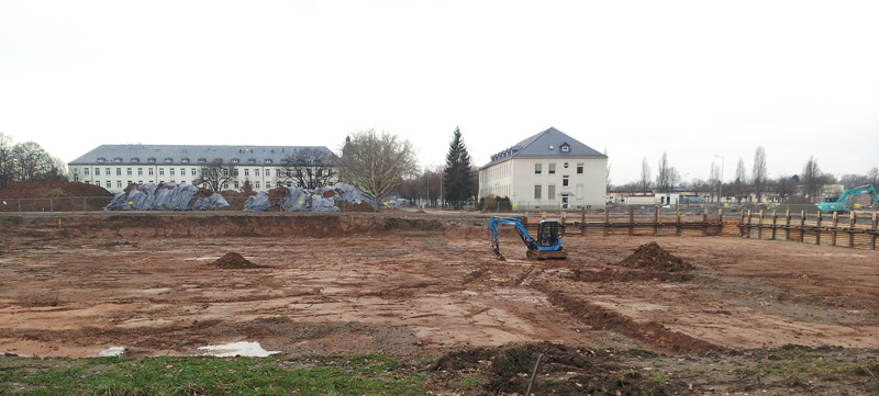 Hochschule für angewandte Wissenschaften Würzburg-Schweinfurt: Die 1971 gegründete Fachhochschule (FH) ist mit elf Fachbereichen (2019) an den Standorten Schweinfurt und Würzburg vertreten. Im Wintersemester 2018/19 studierten hier 9.276 Studentinnen und Studenten in den Bereichen Technik, Wirtschafts- und Sozialwissenschaften, Informatik, Gestaltung und Sprache. Das Bild zeigt die Baustelle des sog. i-Campus in Schweinfurt. Auf dem Gelände der ehemaligen US-Kaserne "Ledward Barracks" werden bilinguale Studiengänge angeboten werden. (Foto von Michael Bemmerl lizensiert durch CC BY 3.0 DE via Wikimedia Commons) HLB