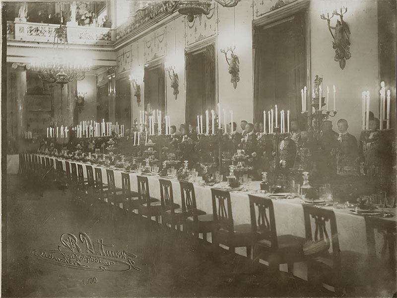 Hochzeit Kronprinz Rupprechts von Bayern (1869-1955) mit Prinzessin Marie Gabriele (1878-1912) am 10. Juli 1900. Fotografie der Tafel mit Hofdienerschaft von Bernhard Dittmar (1865-1939). (Bayerische Staatsbibliothek, Bildarchiv port-030779) HLB