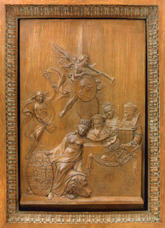 Johann Michael Dückert: Allegorie zum 400 jährigen Jubiläum der Universität Heidelberg 1786, Relief, Birkenbaum, H: 32,2 cm, Br.: 25,2 cm. (© Kurpfälzisches Museum der Stadt Heidelberg)
