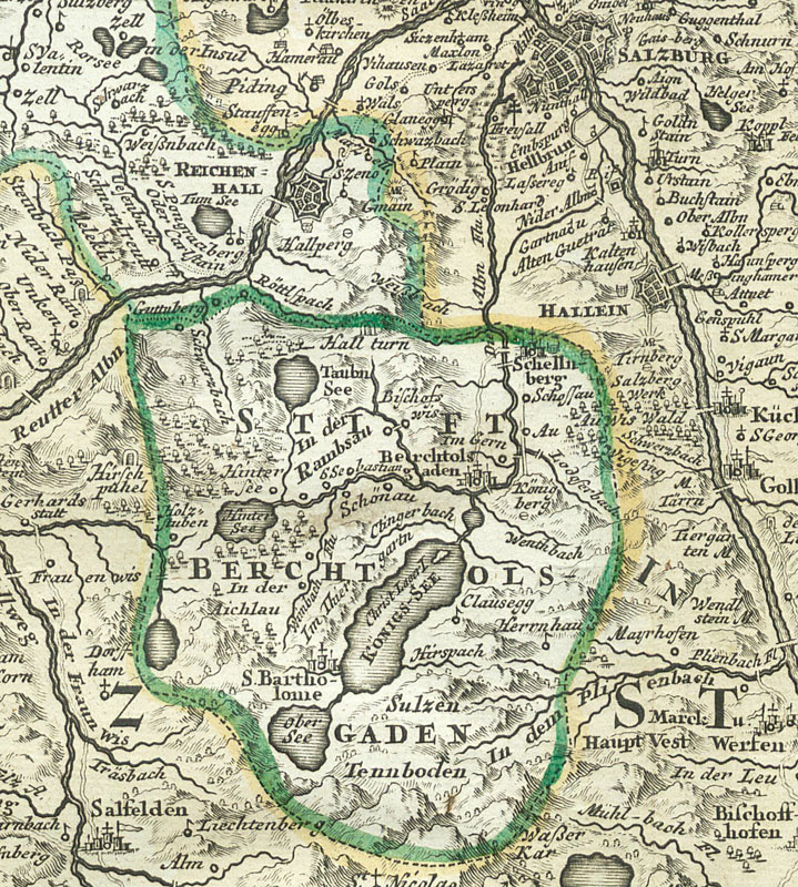 Kartenausschnitt mit dem Territorium der Fürstpropstei in der Karte von Johann Baptist Homann über das Erzstift Salzburg. Johann Baptist Homann, S[acri] R[omani] I[mperii] Principatus et Archiepiscopatus Salisburgensis: cum Subjectis, Insertis, ac Finitimis Regionibus, Nürnberg c. 1715. (Bayerische Staatsbibliothek, 2 Mapp. 8-3,1#54) HLB