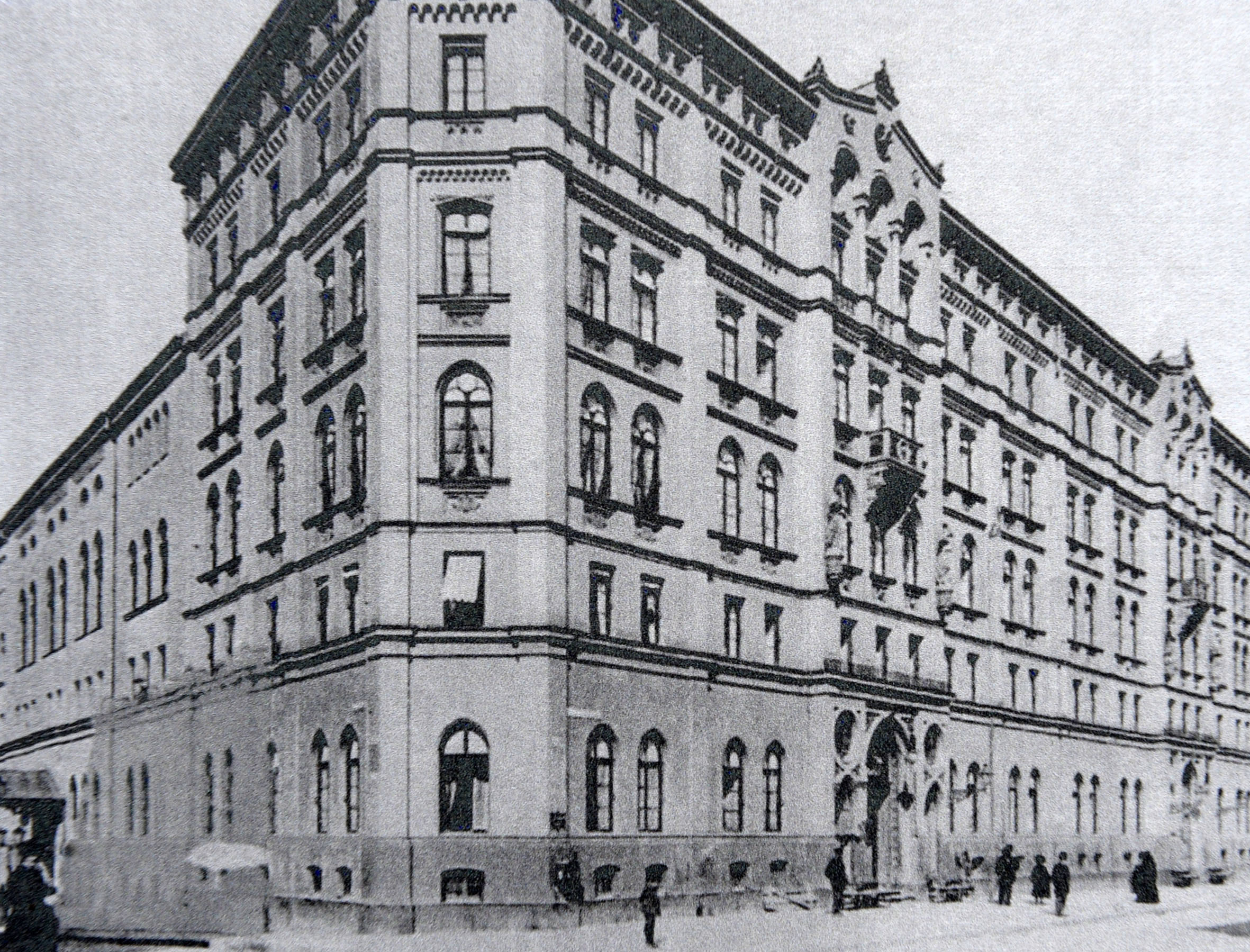 Der Sitz der Thule-Gesellschaft in München: Das Hotel Vier Jahreszeiten auf einer Ansicht aus dem Jahre 1890. (Stadtarchiv München, Wein-0055)