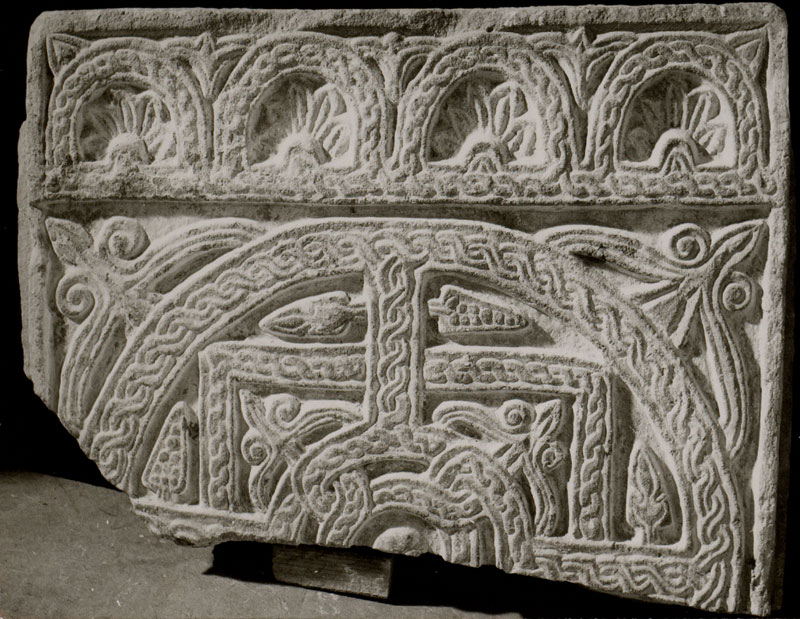 Chorschrankenplatte aus dem ehemaligen Kloster und Kirche St. Arsatius, Ilmmünster. Fotograf: Herrmann Dannheimer. (Archäologische Staatssammlung München, sw_05097_b) HLB