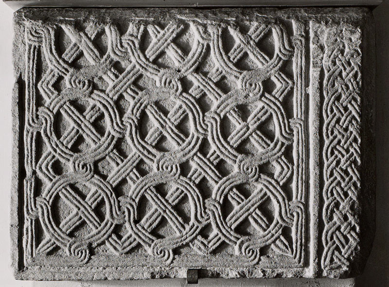 Chorschrankenplatte aus dem ehemaligen Kloster und Kirche St. Arsatius, Ilmmünster. (Archäologische Staatssammlung München, sw_05062_a) HLB