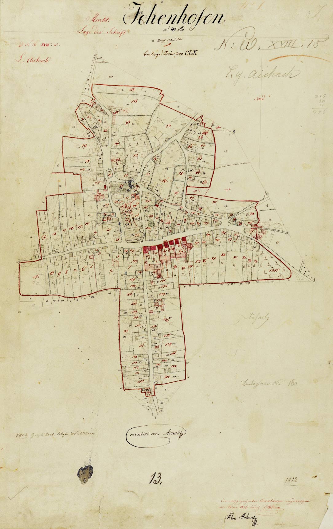 Ansicht von Inchenhofen, 1812. (Bayerische Vermessungsverwaltung, Inc 1812 I13, lizenziert durch CC BY-ND 4.0) HLB