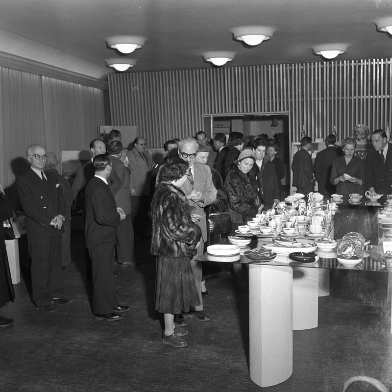 Ausstellung "Keramiken aus Pesaro, 9. - 15. Januar 1956, im Italienischen Kulturinstitut in München. Foto von Felicitas Timpe (1923-2006) (Bayerische Staatsbibliothek, Bildarchiv timp-017401) HLB
