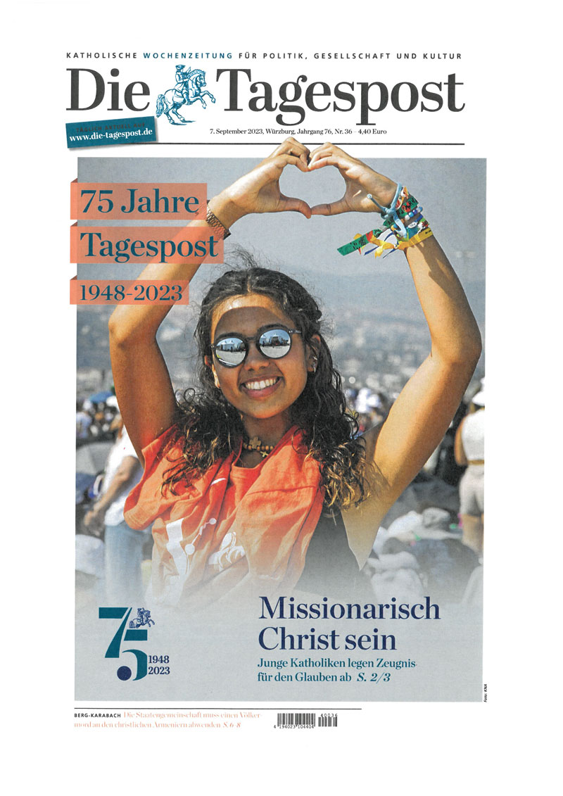 Titelblatt der Jubiläumsausgabe der Tagespost vom 7.9.2023 (75 Jahre). (Die Tagespost) HLB