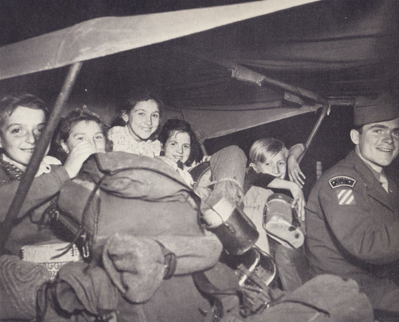 Bereits im Herbst 1945 begannen Soldaten und Offiziere der US-Besatzungstruppen mit der "Jugendbetreuung". Die Ausflüge im Jeep waren bei Kindern und Jugendlichen sehr begehrt. (Bayerischer Jugendring)