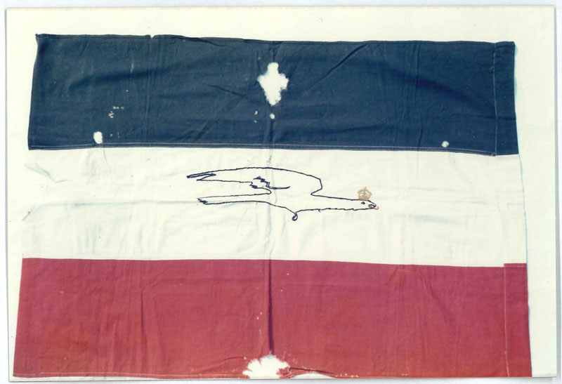 Fahne der Ortsgruppe Erlangen im Deutsch-Nationalen Jugendbund, ca. 1920 (51x75 cm). (Archiv der deutschen Jugendbewegung, Signatur: Junabu _Erlangen_Fahne_ adjb _g 1_89)