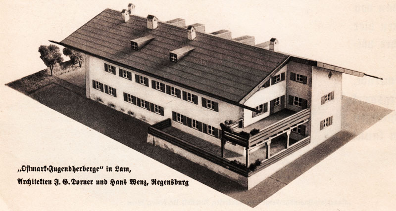 Modell der Jugendherberge in Lam (LK Cham) der Regensburger Architekten J. G. Dorner und Hans Wenz. (aus: Rodatz, Johannes: Das großdeutsche Jugendherbergswerk 1938, Berlin 1939)