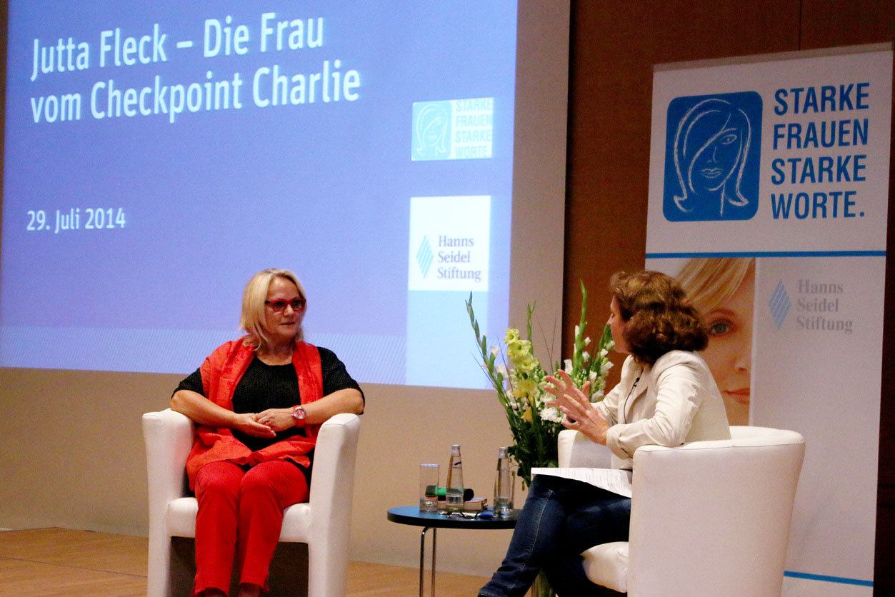 Zeitzeugengespräch mit Jutta Fleck „Die Frau vom Checkpoint Charlie“ in der Reihe „Starke Frauen Starke Worte“ am 29. Juli 2014. (Foto: Hanns-Seidel-Stiftung)