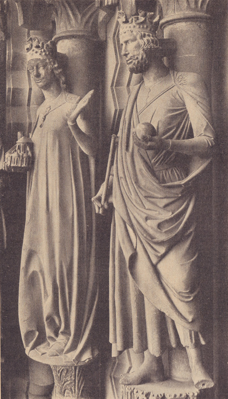 Kaiser Heinrich II. der Heilige und Kaiserin Kunigunde am Adamsportal im Bamberger Dom. Abb. aus: Das Bayerland, Jahrgang 36 vom Oktober 1925, 615. (Bayerische Staatsbibliothek, 4 Bavar. 198 t-36) HLB