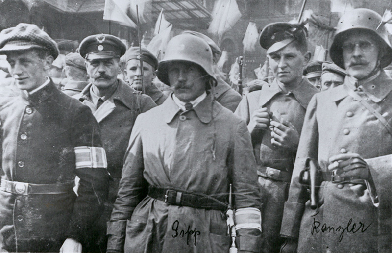 Rudolf Kanzler (1873-1956) und Mitglieder des Freikorps Chiemgau, um 1920. (Stadtarchiv Rosenheim, Bildnr. DB_671)