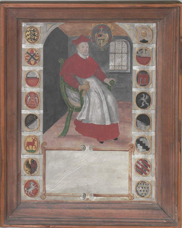 Gemälde zur Erinnerung an Gründer und Fundation der Universität Dillingen, Süddeutschland 1606, Nr 1. Kardinal Otto Truchseß von Waldburg (1514 – 1573). (Studienbibliothek Dillingen - Signatur: XXVI-1 lizenziert durch CC BY-NC-SA 4.0) HLB