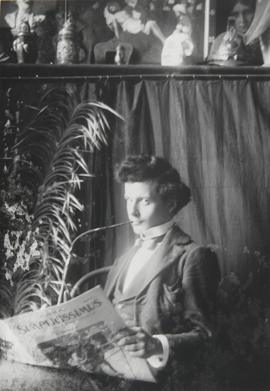 Der aus Neustadt bei Coburg stammende Maler und Karikaturist Karl Arnold (1883-1953) mit einer Simplicissimus-Ausgabe. Arnold studierte zunächst an der Herzoglichen Industrie- und Gewerbeschule in Neustadt, später an der Akademie der Bildenden Künste in München. Seit 1910 arbeitete er für den Simplicissimus und gehörte 1913 zu den Gründern der Münchner Neuen Secession. (Nürnberg, Germanisches Nationalmuseum, Deutsches Kunstarchiv, Arnold, Karl, I,A-14c (0061)) HLB