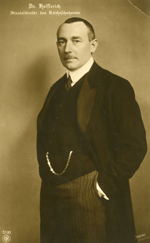 Karl Helfferich (1872-1924) war während des Ersten Weltkriegs Staatssekretär im Reichsschatzamt (1915-1916) sowie Leiter des Reichsamtes des Innern und Reichsvizekanzler (1916-1917). (Bayerische Staatsbibliothek, Bildarchiv, ana-004081)