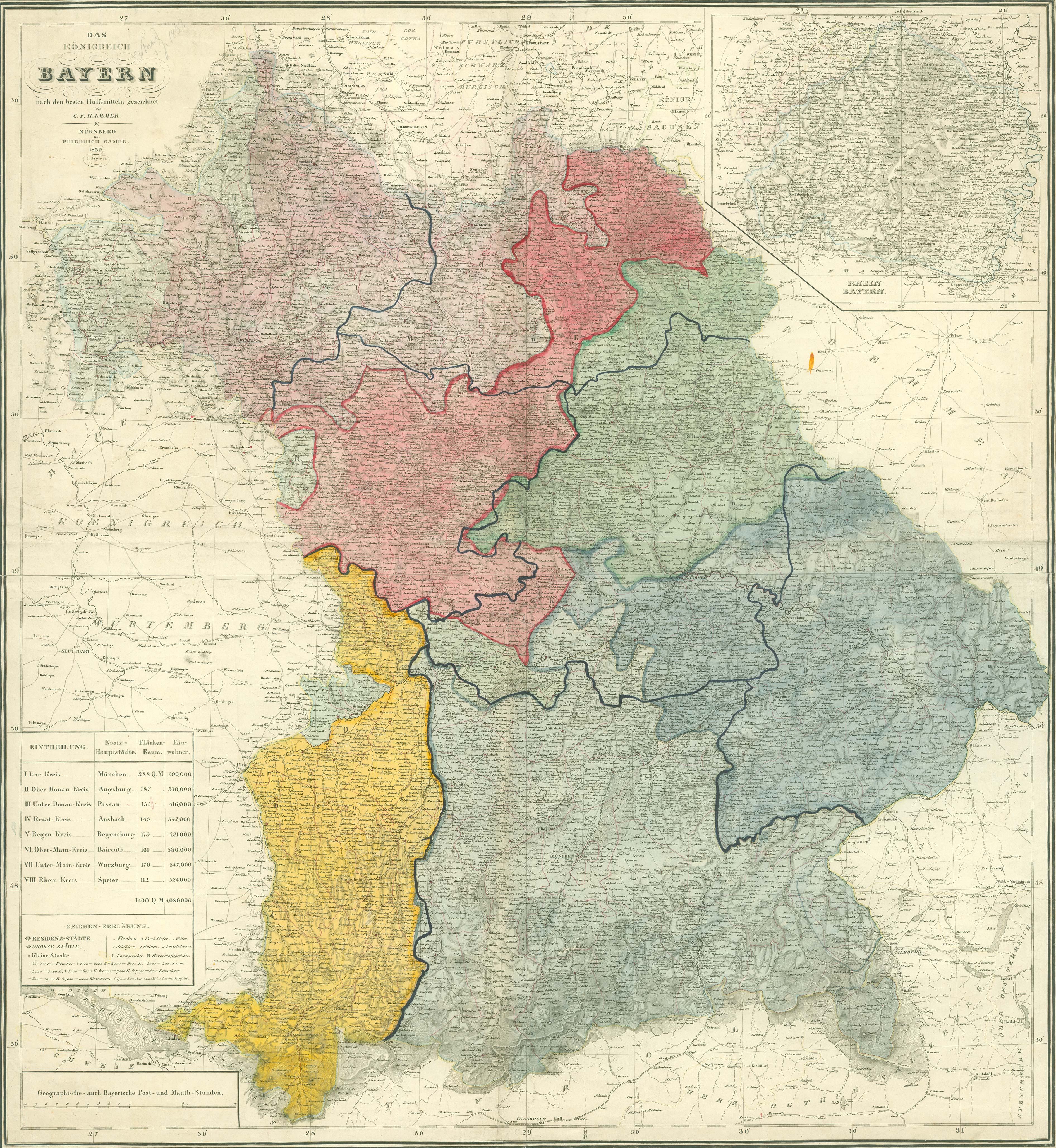 Das Königreich Bayern, Karte 1830 von Friedrich Campe erstellt. (Bayerische Staatsbibliothek, Mapp. XI,57 xa)