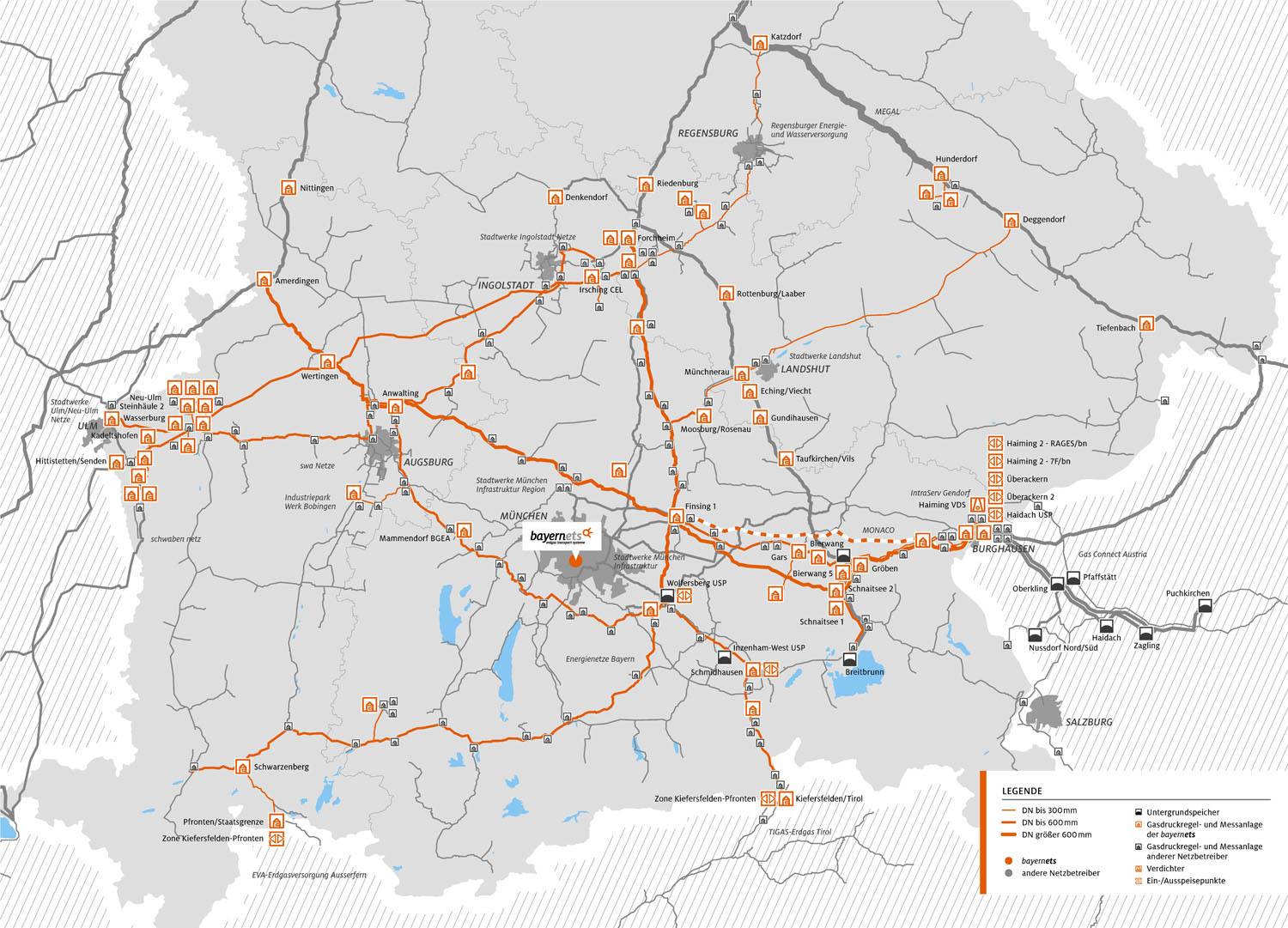Karte des Erdgasfernnetzes von Bayernets (Karte: Bayernets).