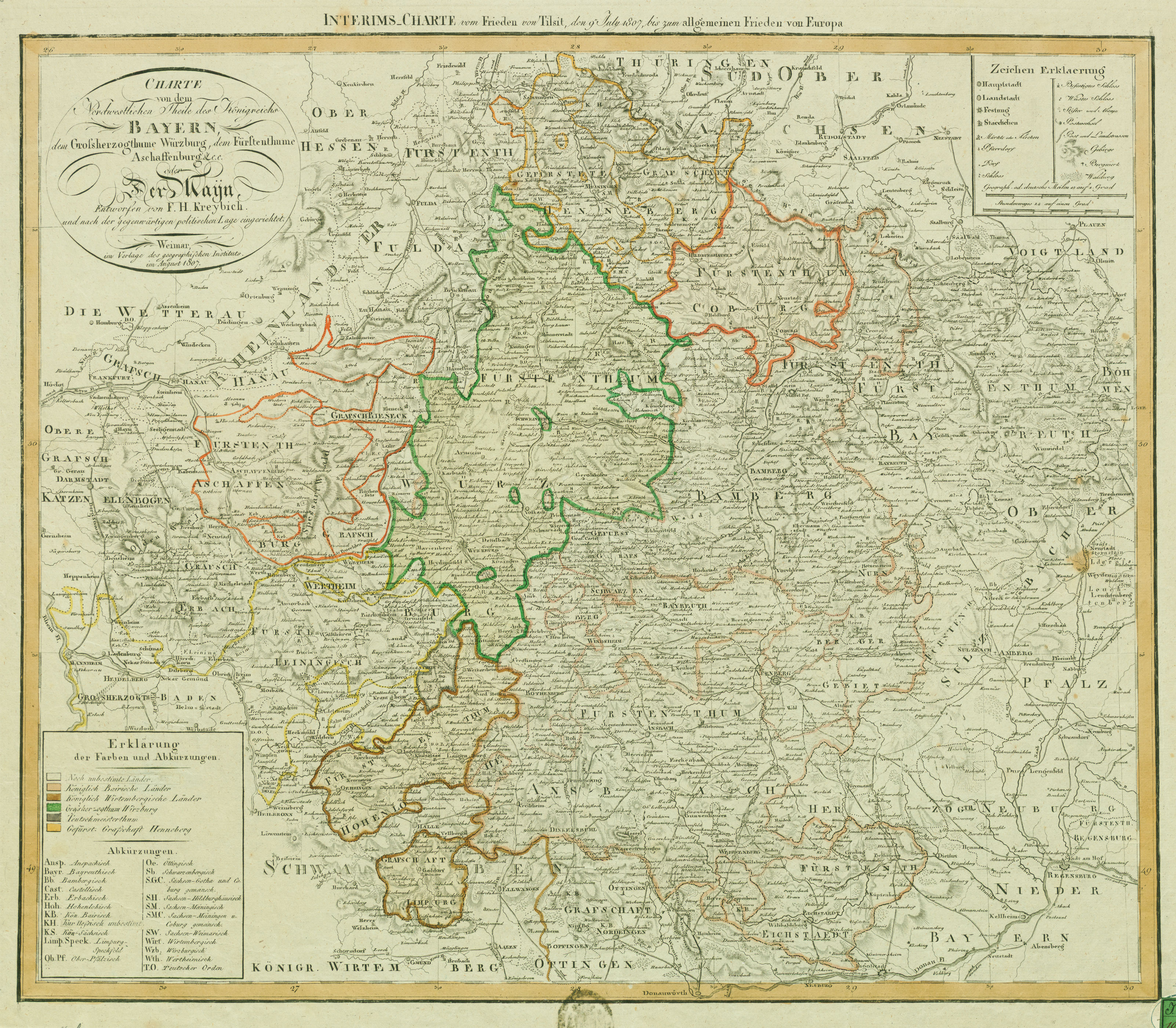 Charte von dem Nordwestlichen Theile des Königreichs Bayern, dem Grossherzogthume Würzburg, dem Fürstenthume Aschaffenburg, ... Weimar 1807 (Bayerische Staatsbibliothek, Mapp. XI,96 yf)