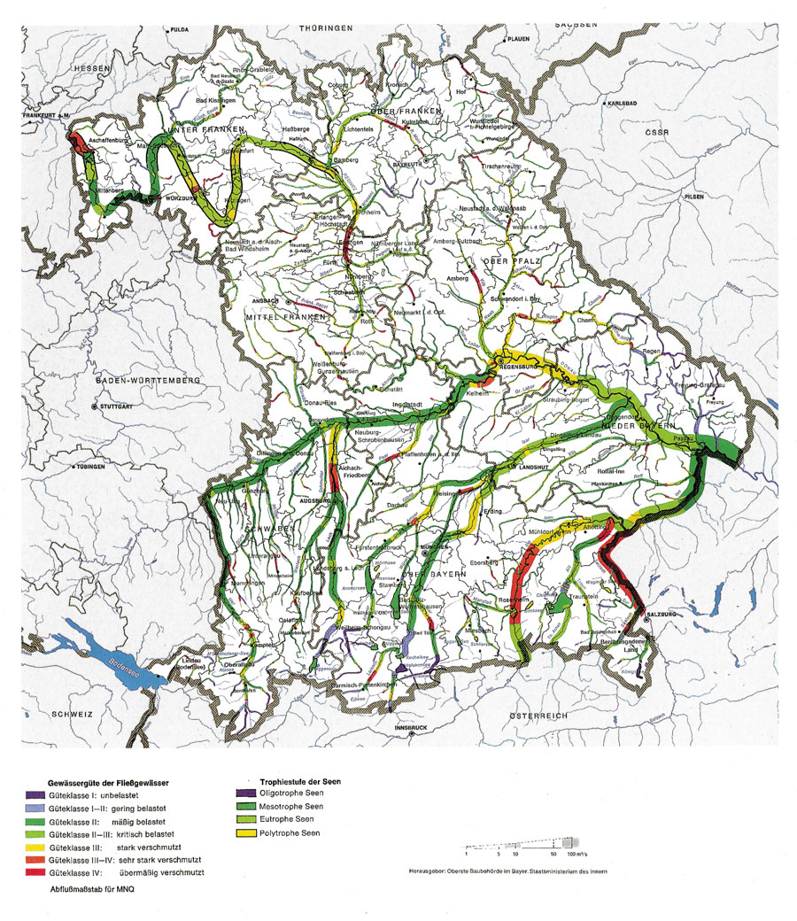 Karten der Gewässergüte (Wasserqualität) Bayerns, 1973. (Quelle: Bayerisches Landesamt für Wasserwirtschaft) HLB