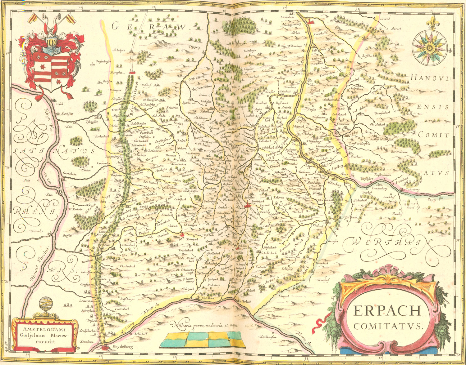 Die Grafschaft Erbach im Jahr 1640. Karte aus: Johannes und Cornelius Blaeu, Theatrum Orbis Terrarum, Sive Atlas Novus, Bd. 68. (Bayerische Staatsbibliothek, 2 Mapp. 28-1#68)