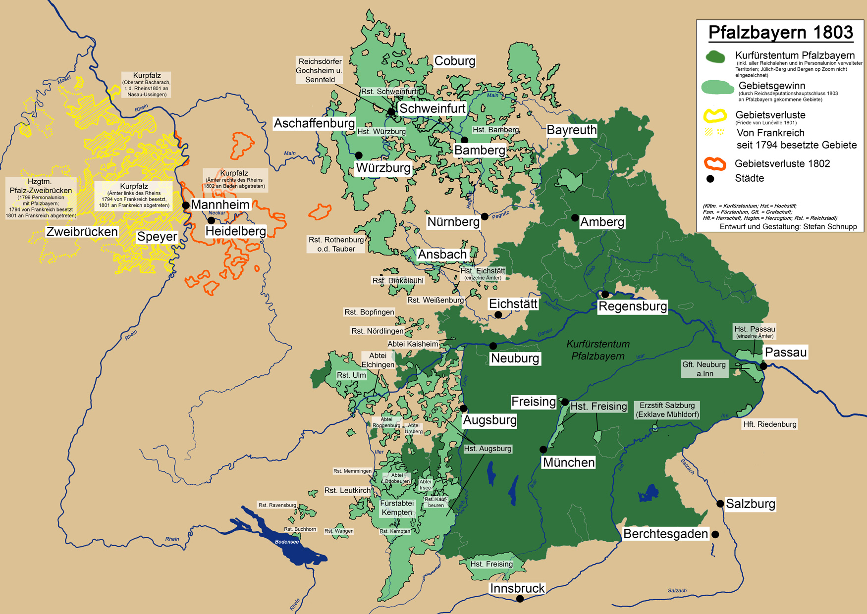 Pfalzbayern 1803, nach dem Reichsdeputationshauptschluss. (Entwurf und Gestaltung: Stefan Schnupp) HLB
