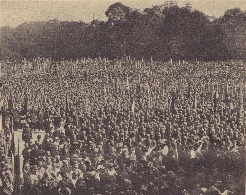 Der 62. deutsche Katholikentag in München, 27.-30. August 1922. Kardinal Faulhaber hielt zu diesem Anlass eine Festmesse auf dem Königsplatz vor mehr als 100 000 Besuchern. Abb. aus: Das Bayerland, Jahrgang 33 vom September 1922, 418. (Bayerische Staatsbibliothek, 4 Bavar. 198 ta-33) HLB