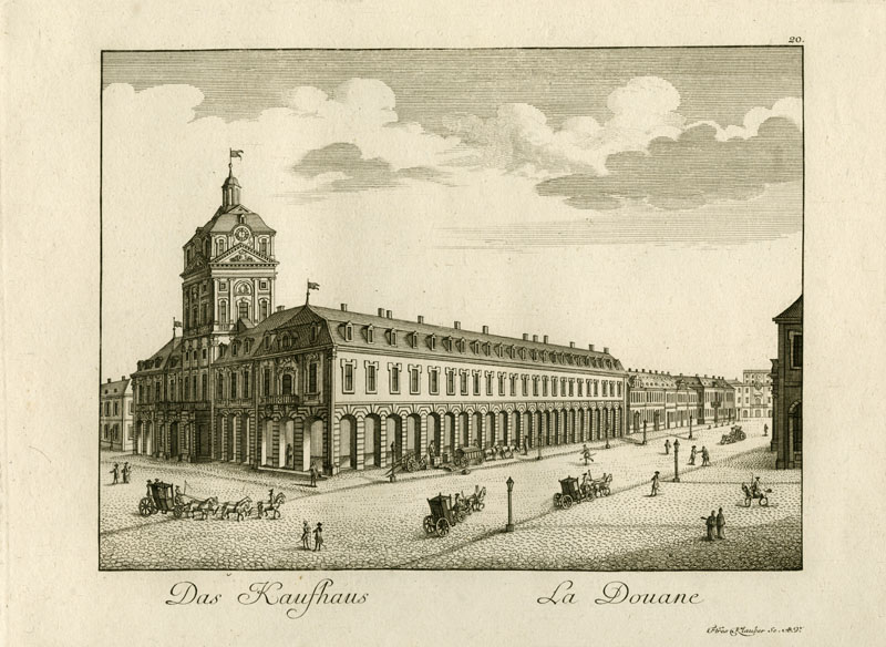 Das Kaufhaus in Mannheim auf einem Kupferstich aus dem Jahre 1782. (Bayerische Staatsbibliothek, Bildarchiv BA/4 Germ.sp. 300 m)
