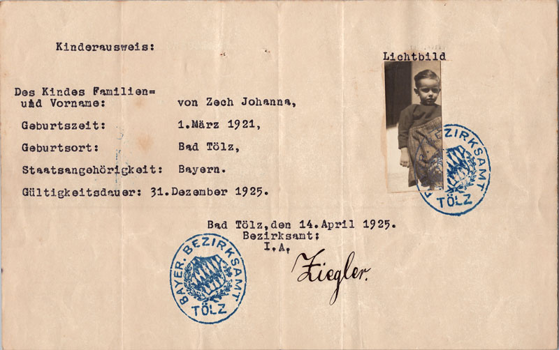 Kinderausweis von Johanna Gräfin von Zech (1921-1939). (Foto: Privat)