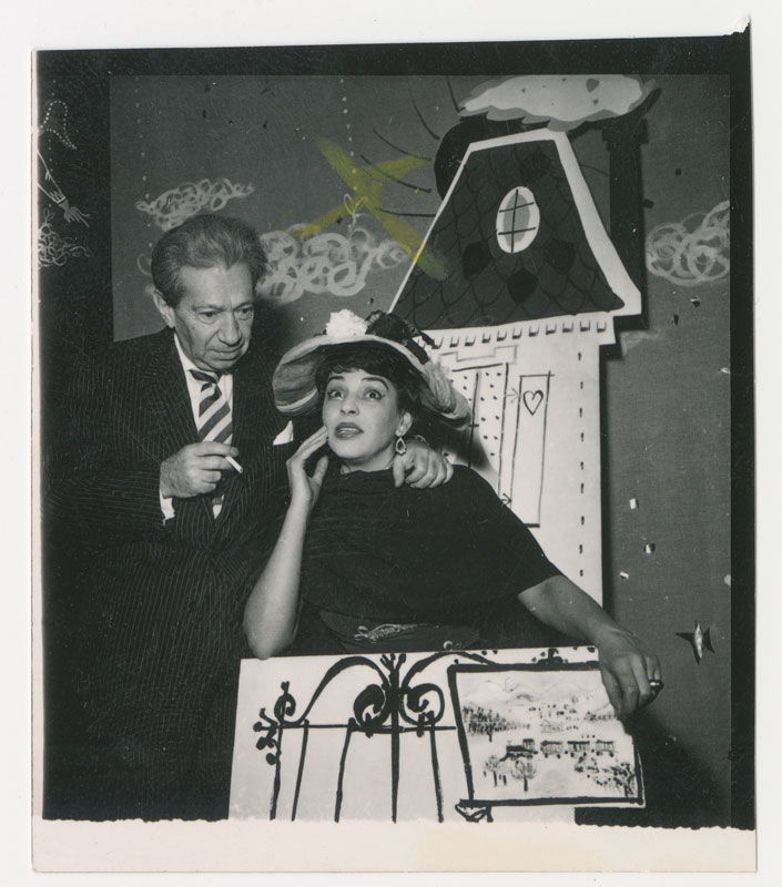 Friedrich Hollaender (1896-1976]) und Hanne Wieder (1925-1990) bei der Revue "Fritschikato" zum zehnjährigen Bestehen der „Kleinen Freiheit“, 1961. Foto: Felicitas Timpe (1923-2006). (Bayerische Staatsbibliothek, Bildarchiv timp-023855) HLB