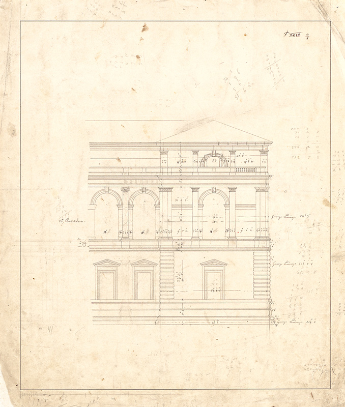 Entwurf des Architekten Leo von Klenze (1784-1864) für die Alte Pinakothek. (Architekturmuseum der TU München, Signatur kle-38-15, lizenziert durch CC BY-NC-ND 4.0) HLB