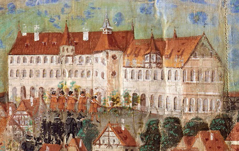 Das Kollegiengebäude um 1575 (Bildausschnitt). (Staatsarchiv Nürnberg, Reichsstadt Nürnberg, Karten und Pläne 386) HLB