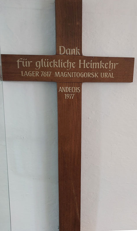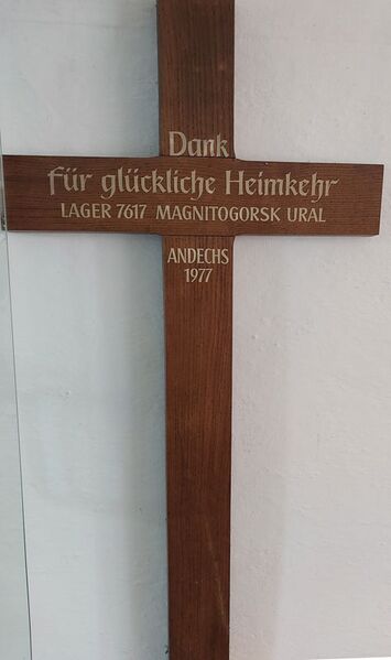 1977 gestiftetes Kreuz für die Heimkehr aus der sowjetischen Kriegsgefangenschaft bei der Klosterkirche Andechs. (Foto: Daniel Rittenauer) HLB