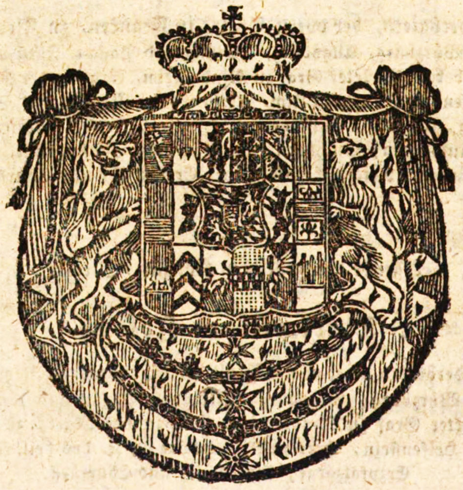 Großes Kurbayerisches Wappen von 1804. Abb. aus Regierungsblatt für die Churpfalzbaierischen Fürstenthümer in Franken aus dem Jahre 1804, 232. (Bayerische Staatsbibliothek, 4 Bavar. 3059 d-2)