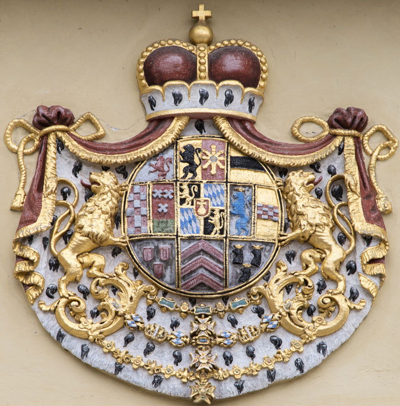 Wappen Max IV. Joseph (reg. 1799-1825) als Kurfürst von Pfalzbayern, bis 1804 genutzt. Das Wappen befindet sich an der Hofkirche in Neuburg an der Donau. (Bistum Augsburg) HLB