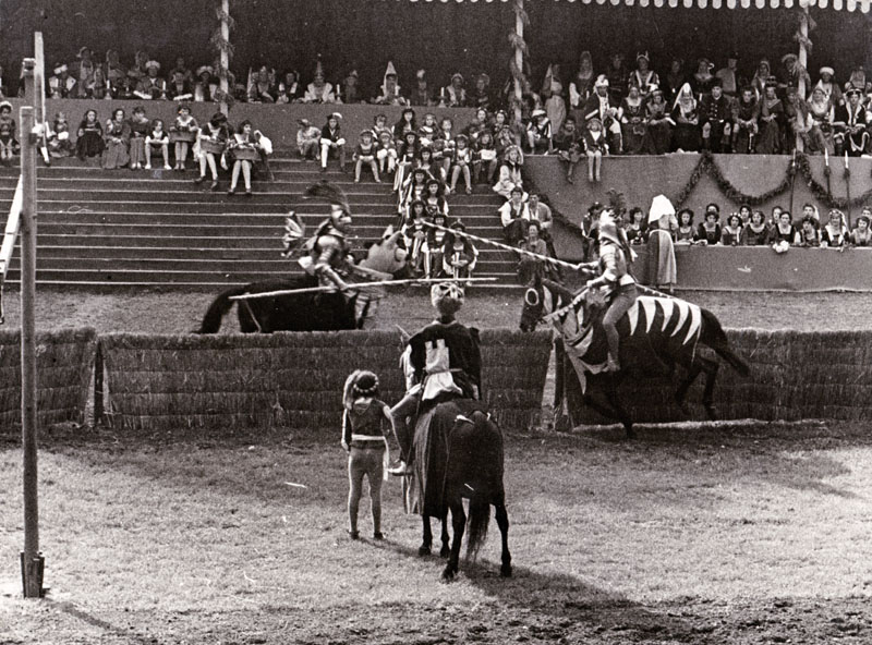 {{|1=Szene vom Ritterturnier aus dem Jahre 1956 anlässlich der Feierlichkeiten zur Erinnerung an die Landshuter Hochzeit. (Verein "Die Förderer" e. V.)}}