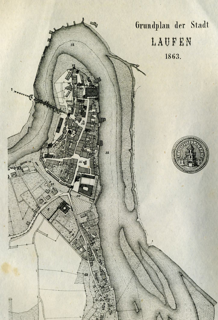 Lageplan der Stadt Laufen, 1863.(Stadtarchiv Bad Reichenhall) HLB