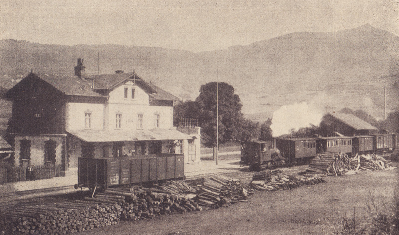 Station Lam (Lkr. Cham) der Lokalbahn Lam - Kötzting. Abb. aus: Theodor Lechner, Die Privat-Eisenbahnen in Bayern. Eine Betrachtung nach der geschichtlichen, technischen und wirtschaftlichen Seite, München und Berlin 1920, 187. (Bayerische Staatsbibliothek, 4 Bavar. 3139 o) HLB