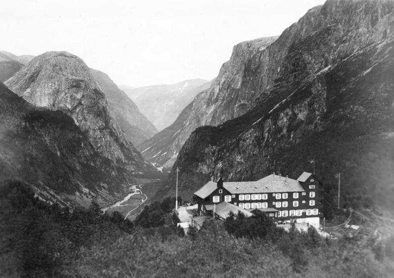 1943 wurde bei Voss (in Norwegen) das Lebensborn-Heim Stalheim eingerichtet. Das Foto von 1925 zeigt das Gebäude des damaligen Stalheim-Hotels, das der Lebensborn später übernahm. (Bundesarchiv, N 1572 Bild-1925-118/Fleischhut, Richard/CC-BY-SA 3.0 via Wikimedia Commons) HLB