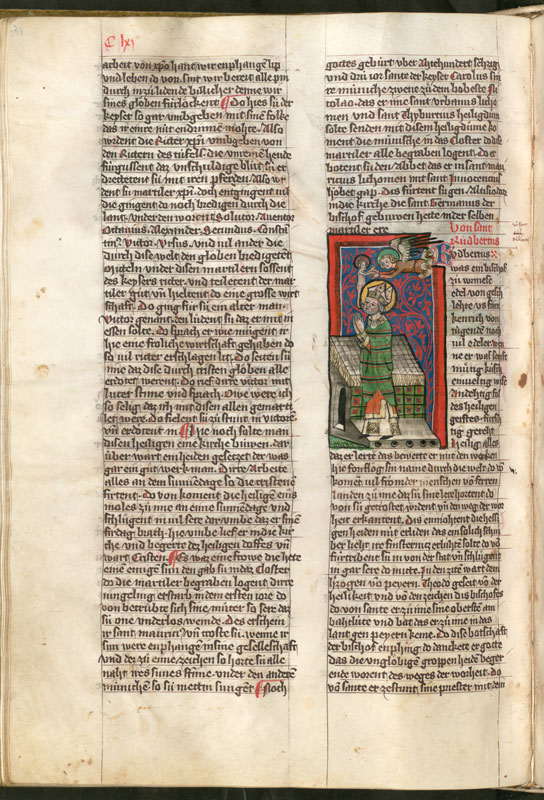Älteste deutschsprachige Übersetzung der „Communis legenda sancti Rodberti episcopi“ in der sogenannten Elsässischen Legenda Aurea. (Bayerische Staatsbibliothek Cgm 6, fol. 162v) HLB