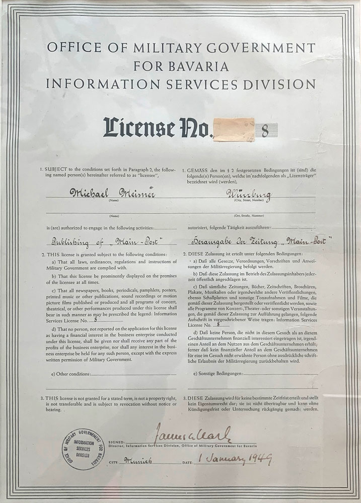 Lizenz Nr. 8 für die Main-Post. (Main-Post) HLB